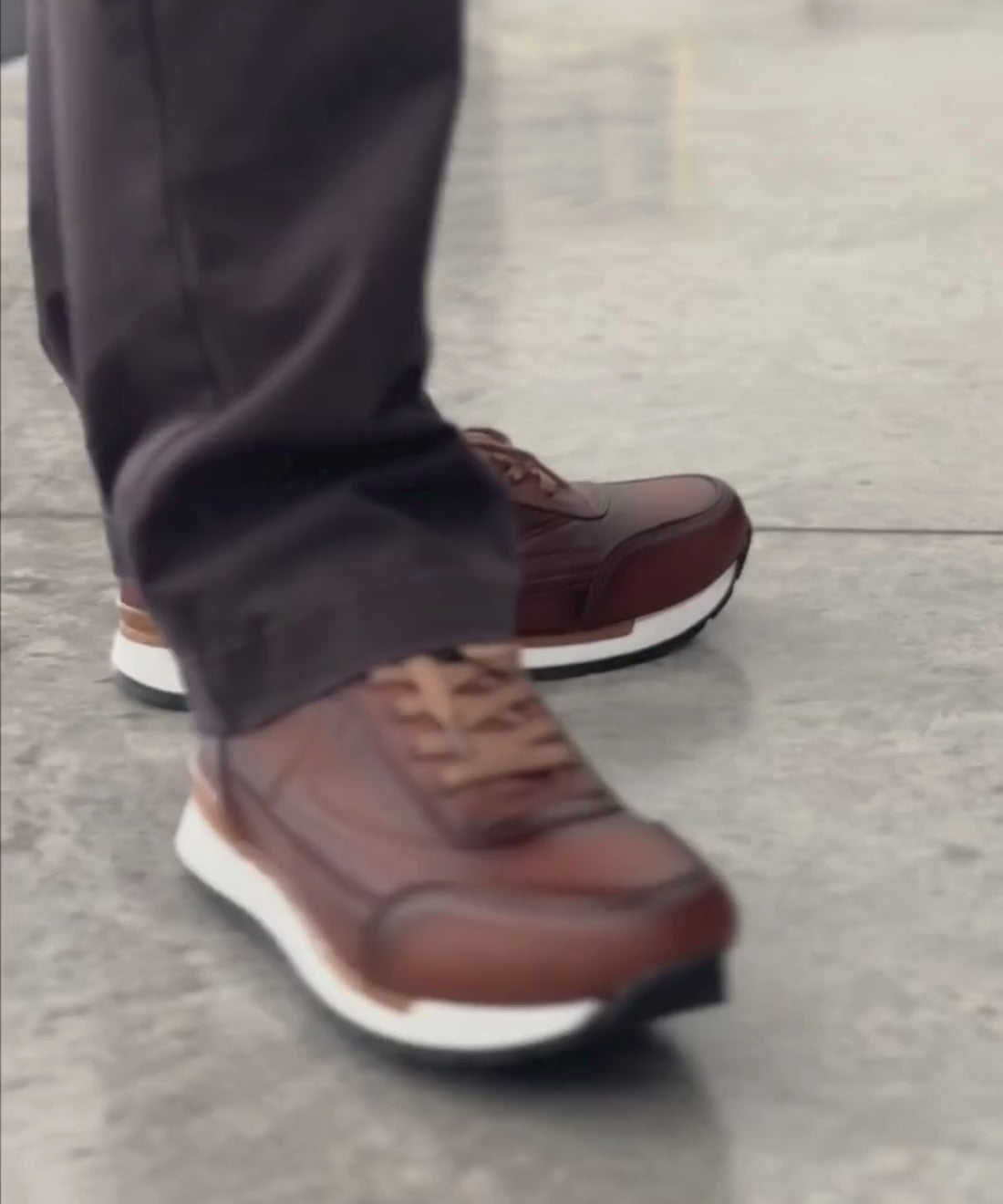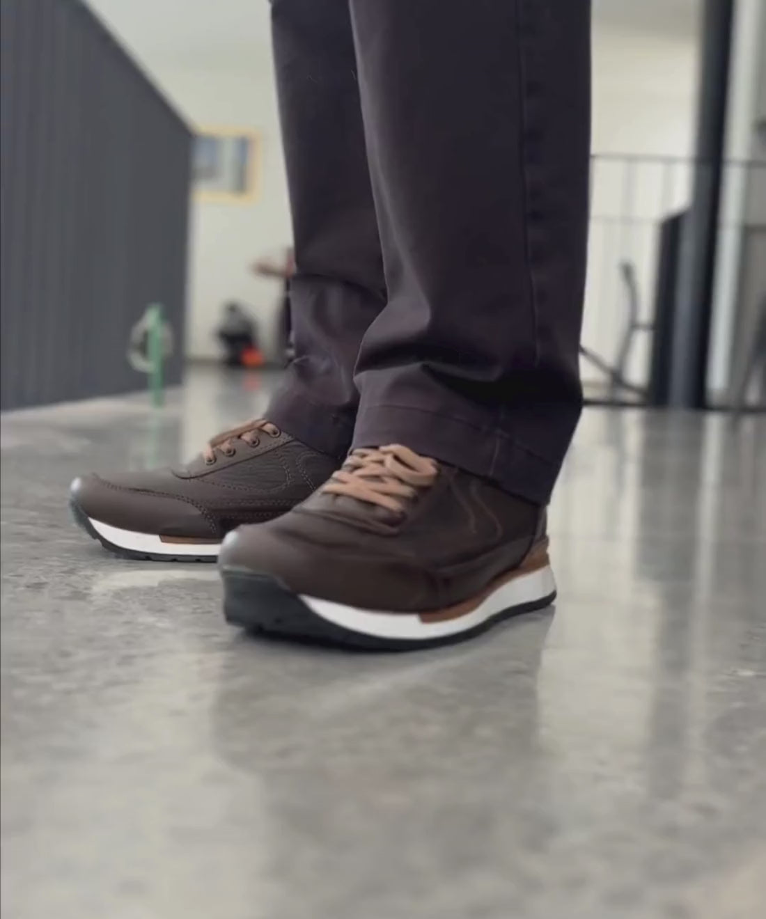 Tenis de piel genuina con grabado tipo pitón en tono café. Diseño artesanal, plantilla ergonómica y forro interior de piel. Elegancia discreta con confort duradero.